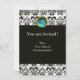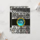CONVITE BRANCO PRETO SEDA DAMASCO TEAL AZUL GEMA MONOGRAMA