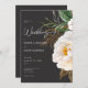Nosso convite para casamento preto de carvão com uma peônia branca em greve, centro amarelo mole, verde-luxuoso, e chumbos delicados de algodão é uma obra-prima moderna. O texto branco nítido adiciona um toque de elegância, enquanto o fundo escuro cria um pano de fundo dramático para o seu dia especial. Esta design é uma mistura impressionante de elegância moderna e romance eterno. Criado pela imprensa simplesmente de farmácia.