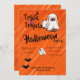 Entre no espírito assustador com este Truque laranja ou Cartão de Convite para Festa de Halloween! Apresentando um cão fantasma, mini fantasma, e morcegos, este cartão de convite é perfeito para bruxas, magos, e qualquer um que ame vibrações mágicas. 🎃 🧙 ♀️ Esta bela carta de convite de Halloween inspirada pelas bruxas faz a escolha perfeita para amantes, amigos ou família do Halloween que desfrutam de um toque de magia e de malícia! O texto é totalmente personalizável - você pode adicionar, editar ou remover palavras para ajustado em qualquer ocasião. ➤ Descubra Apenas as Coisas do Japão também - Da vintage à moderna, uma loja que celebra designs estéticos japoneses para os itens do dia a dia. [https://www.zazzle.com/store/justjapanthings/products]