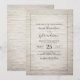 Um convite de casamento com um fundo de tijolos brancos com texto e borda de cinzas escuras.