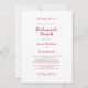Elegante, trendy magenta, vermelha e branca, as madrinhas de casamento brunch evento noiva convite da festa noiva apresenta um eterno clássico clássico e formal. O acabamento sem bordas permite que você escolha facilmente sua forma de papel favorita para a aparência final. Um fundo transparente permite que a beleza de sua escolha de papel seja apreciada na frente e no verso do cartão. Duas decorações florescem cada uma contendo um coração solteiro maravilhosamente rodeado pela escrita. Personalize com seus detalhes em delicadas letras e scripts. Para obter resultados ótimos, substitua os detalhes do modelo com seus próprios detalhes, deixando espaço entre os parágrafos como no exemplo e capitalizando onde especificado ou se a palavra for um nome adequado e normalmente capitalizado. Envie um email para invitationsuites@gmail.com com perguntas ou solicitações de cores personalizadas.
