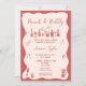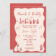 Simples lagosta Vermelha branca e lagosta Desenhou Contemporâneo Convite Retroativo Francês com um quadro de arco, um trabalho de arte de tendência caprichosa para o seu casamento francês por Savanamm e o texto "isso é demais"