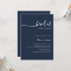 Convide convidados para um brinde especial com este elegante convite de marinho com tipografia moderna da escrita. O layout minimalista e o talento manuscrito criam um design eterno que se emparelha maravilhosamente com eventos de casamento contemporâneos. Perfeito para honrar a noiva no estilo.
