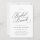 Apresentação do Convite Bridal Bridal Brunch do Elegante Este convite sofisticado apresenta uma tipografia de script chic, perfeita para um brunch bridal refinado. O design preto e branco exude glamour clássico e simplicidade, fazer ideal para a noiva. Com elementos manuscritos românticos e um toque brilhante de tendências, é perfeito para aqueles que apreciam elegância eterno.