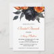 Este convite elegante apresenta um design floral de cor d'água ousado em tons ricos de laranja e preto, perfeito para uma celebração de estação assustadora com uma reviravolta gótica. Celebrar a noiva em uma atmosfera quente e convidativa sazonal, cheia de encanto arecida do outono.