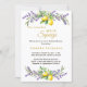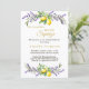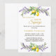 Elegant lemon and lavender Bridal Shower invitation featuring a fresh botanical design with yellow lemons and soft purple lavender. Perfect for summer, garden, or Mediterranean-inspired weddings. Text: She found her Main Squeeze