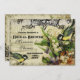 Matching Engagement, Wedding or Bridal Shower Invite. COLOR PALETTE: yellow, tan, cream, orange, green, and black. DESIGN: This antique vintage typography inspired wedding invitation set or collection has a complete ensemble of products and has been created in several colorways. Using vintage printer's ornament decorative swirls from the baroque Victorian era, mixed with postcard flower art including lily of the valley, english violets, roses and snap dragon blossoms. A pair of yellow song birds with an open bird cage completes the front of the invite. The reverse side includes your text, which is easily customized using the template fields for personalizing. There are more swirled flourish designs, swirled line work, aged, grunged border edges and the birdcage and roses. This is a mix of vintage design elements and original watercolor backgrounds graphically designed into new art work by Audrey Jeanne Roberts.