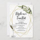 Elevate your next celebration with these 'Bride in a Tini Bit' Martini Soirée Bachelorette Party Invitations, where classic sophistication meets modern playfulness. Perfectly curated for a Dirty Martini Bach Party, Tini Time Bridal Shower, or an upscale "Girls' Night In," this design sets the tone for an evening of chilled glass and warm company. The design features a hand-illustrated olive branch and a crisp watercolor martini, blending organic textures with party vibes. The striking gold geometric frame and shimmering confetti accents provide a luxury feel that pops against the clean white card stock. Easily personalize the name, date, and venue details. Whether you're hosting at a local lounge or your own "Martini Bar" at home, the template adapts to your event perfectly. The back of the invitation features a customizable QR code allowing you to easily link more information for your guests to scan and view, so you can start planning a weekend full of a 'Tini Bit of Fun!'.
