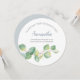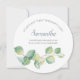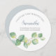 A Elegante ponte botânica de cor d'água ou a placa de proposta de madrinha de casamento em um formato redondo único enquadra seus detalhes com uma borda de folhas de cor d'água eucalipto em tons de verde. A fonte é definida em um tipo elegante de sans tradicional serif e script. Perfeito para primavera, verão, outono do outono, casamentos temáticos rústicos ou jardins. Para ver mais designs como este, visite o VG Invites em www.zazzle.com/vginvites