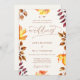 Folhas de outono em aquarela e cobre, abóbora brilhante e esquema de cor de ferrugem decoram este elegante, simples, elegante e moderno modelo de convite para casamento. Apresenta caligrafia moderna e elegante com amplos florescimentos. Crescente monograma para noiva e noivo. Luxuoso, mas simples, clássico, mas chique, moderno, mas eterno. Uma escolha encantadora para um casamento no outono com cobre, laranja queimada, terracota, bege, vermelho, laranja e outras matizes de outono.