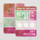 Cor brilhante. Um design simples e limpo. Tipo grande. A Estrela de David... apareceu em seguida. Esta placa de resposta de convite RSVP do Bat Mitzvah, moderna e exclusiva, apresenta uma paleta complementar com cada seção definida por uma cor de fundo única. Todas as informações impressas podem ser personalizadas com o nome da sua filha e a data do evento... basta preencher os campos!