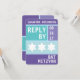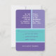 Cores brilhantes. Um design simples e limpo. Tipo grande. A Estrela de David... exibido com destaque em uma linha. Esta placa de resposta de convite RSVP do Bat Mitzvah, moderna e exclusiva, apresenta uma paleta complementar com cada seção definida por uma cor de fundo única. Todas as informações impressas podem ser personalizadas com o nome da sua filha e a data do evento...basta preencher os campos!