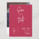 Este moderno evento de casamento ao estilo minimalista salve a data convite com lindas características tipográficas de escrita e fontes serif simples com fundo viva magenta. É perfeito para qualquer tema de casamento. Substitua a foto pela sua no verso do convite para lhe dar um toque pessoal agradável. Você pode personalizar e personalizar o convite para ajustado das suas necessidades de evento de casamento e clicar em personalizar o convite. EXEMPLO: Se você quiser obter um exemplo deste convite, poderá solicitar apenas UM cartão (alterar a quantidade para UM) e selecionar suas preferências para ver como ele é exibido e se sente. Pode consultar o resto dos nossos produtos no Zazzle em https://www.zazzle.com/store/1creativemastermind/products Se quiser consultar o nosso compro sobre o Etsy, pode consultar 1CreativeMastermind.etsy.com