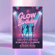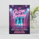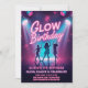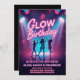 Ilumine a noite com este Convite de Aniversário Glow! Com letras em rosa neon, holofotes de palco brilhantes e silhuetas dançantes, este design é perfeito para uma festa de aniversário divertida com tema de brilho, dança e celebração.