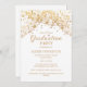 Convite de festa de graduação branco com brilho dourado para a turma de 2024 ou qualquer ano. O texto é personalizável, então faça-o seu. Entre em contato para obter ajuda com a personalização ou para solicitar produtos correspondentes.