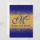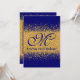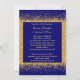 Um convite de casamento moderno com um luxo confete de ouro a dissipar-se num fundo azul real profundo. A placa se reverte para o texto em um grande retângulo azul enquadrado em brilho dourado. Você pode personalizar com seus detalhes clicando no link personalizar. Isto faz parte de uma suite de casamento clássica que inclui um envelope, uma etiqueta, um menu e muitos outros itens.