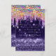 Entre num mundo de celebração mágica com o Convite de Casamento de Aniversário Glitter Drip Wedding Birthday Party Purple Rainbow da Zazzle. Este convite encantador apresenta um deslumbrante fundo roxo com um efeito de gotejamento de glitter que imita um arco-íris em cascata, estabelecendo o tom perfeito para um evento festivo e glamoroso.