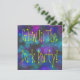 Néon colorido brilha no modelo convite de aniversário escuro.