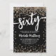 Apresentando um convite de festa de 60 anos chic e comemorativo, perfeito para marcar esse marco especial com estilo. O design elegante apresenta uma mistura de confetes glitterados dourados e prateados, adicionando um toque de diversão e festividade. No topo, "Sessenta" é exibido de forma proeminente em caligrafia negrito, definindo o tom para uma celebração inesquecível. O texto combina fontes script e modernas simples em branco, criando um contraste marcante contra o fundo preto. Isso dá ao convite uma aparência sofisticada e elegante. O glitter continua no verso, adicionando um toque extra de brilho ao design geral. Este convite é perfeito para celebrar 60 anos com estilo. As cores da fonte e do fundo podem ser personalizadas para combinar com o seu estilo. Convite de Aniversário de 60 Anos Preto e Dourado Glitter Confetes Elegante Divertido Sessenta Celebração. Por favor, note que o glitter é falso, sem folha ou brilho.
