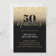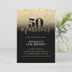 Convite Brilho Ouro Preto Faux Glitter Aniversário de 50 a