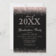 Convite de Graduação com Brilho Rosa Bege e Preto. Este design elegante apresenta confetes cintilantes da moda. Personalize este design personalizado com seus próprios detalhes e fotografia.