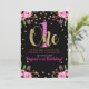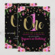 Convite Brilho Rosa Festa de 1º Aniversário Floral Preto