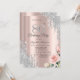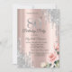 Um design moderno, chique e glamoroso com brilhos de prata, rosas em um fundo dourado rosa.