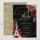 Um moderno, chique e glamuroso brilho gotejante, rosas vermelhas e torre Eiffel em fundo preto.
