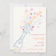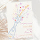 Este estilo desenhado à mão ilustrado salve a data do convite apresenta uma garrafa de champanhe escrivável que pica flores e confete. O design bicho-branco e peculiar inclui fontes escritas à mão e rabiscos de celebração. Colores de pastel com tons azuis empoeirados para uma divertida e moderna coleção de papéis de carta de casamento.