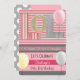 Um convite de festas de aniversário super fofo com tons bonito de rosa. Listras brancas e listras cor-de-rosa e cinzas e bolinhas brancas. Adicione o nome e a idade à frente e as informações da parte traseira.