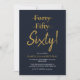 Comemore seu aniversário de 60 anos em estilo e um tom de humor. Num fundo azul marinho, a tipografia dourada no topo tem 40 e 50 riscados com uma linha dourada e, abaixo na letra da escrita, 60. Abaixo, numa mistura de tipografia em ouro e branco, você pode personalizar com seus próprios detalhes. Única e perfeita para as grandes comemorações de aniversário!