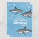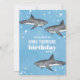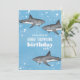 Este design bonito apresenta um oceano de água piscina giro, um animal marinho de tubarão-d-água, vida selvagem náutica, cinza marinha de tubarões preto, um divertido convite de aniversário festivo, um convite de aniversário de criança, uma festa de natação de natação no verão, uma fotografia legal criativa única, um convite de aniversário infantil, um convites de festas de aniversários de tubarão