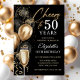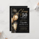 Convite Brindando a 50 Anos Balões Pretos e Dourados