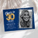 Celebre o grande marco de completar trinta anos com nossos convites de festa de aniversário elegantes. Com um fundo azul moderno personalizável, um local para foto pessoal e detalhes em dourado, esses convites certamente deixarão uma impressão duradoura. Os detalhes do balão de hélio dourado adicionam um toque de magia, enquanto o modelo de texto de aniversário de 30 anos é fácil de personalizar. Porque o estilo não tem limite de idade!