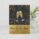 Celebrar o novo ano com esses convites de festas festivos com 2 copos de champanhe e festivos balas de ouro com brilho. O texto diz "Por favor, junte-se a nós enquanto aplaudimos o Ano Novo" - mude se quiser. Adicione seus detalhes de data, hora, local e RSVP. A parte traseira apresenta luzes de cordas douradas falsas. Festivo e de moda, porém clássico e elegante - o convite perfeito para iniciar o Ano Novo.