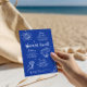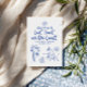 Brinde branca e divertida e desenhada de brinde na costa, convites de festas reais de despedida de solteira azul