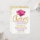 Um convite de aniversário de 50 anos 'brindes a 50 anos' magnífico. Este convite fabuloso apresenta balões em forma de coração rosa quente em um fundo de confetes dourados. Fácil de personalizar com os detalhes da sua celebração de aniversário de casamento de 50 anos.