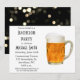 Um convite moderno de brindes de cerveja que você pode personalizar e enviar para uma despedida de solteiro! Um padrão de bokeh preto decora o verso do cartão.