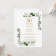 Este convite elegante de aniversário de bodas de ouro 50 anos, em verde oliva, pode ser personalizado com suas informações em tipografia moderna dourada. Concebido por Thisisnotme©