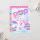 Convite de aniversário unicórnio arco-íris com brinquedo antiestresse bolhas roxo rosa pastel para festa de menina.
