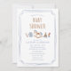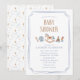 Este encantador convite para chá de bebê apresenta ilustrações suaves em aquarela de brinquedos clássicos para bebês, incluindo um cavalo de balanço, ursinho de pelúcia, anéis empilháveis e blocos de madeira. A moldura elegante desenhada à mão e a paleta de cores suaves criam um design atemporal e caloroso, perfeito para celebrar um menino ou um chá de bebê neutro em termos de gênero.