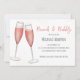 Este design apresenta um chá de panela, com um tema polvilhante, cor-de-rosa-pincel, elegante e moderno, para a futura noiva, com uma aquarela, óculos de champanhe e roteiro de caligrafia, tipografia