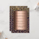 Um convite elegante, legal, glamouroso e feminino para uma festa de aniversário 80 com uma impressão leopardo-marrom, ouro e preta, decorada com confete ouro. Uma estrutura metálica de bronze em falso, com espaço para informação do seu partido. Padrão leopardo com confete.