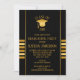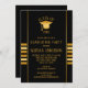 Listras de bronze e gradiente de ouro e moldura com texto dourado no convite de festa de formatura preta. As caixas de texto são fáceis de personalizar com suas próprias informações. Se precisar de ajuda, entre em contato comigo através da minha loja.