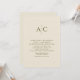 Simples e elegante convite de casamento minimalista com um monograma de tamanho excessivo. A design é despojada de ornamentação externa, dando assim prioridade à funcionalidade, equilíbrio e harmonia. Perfeito para casais que abraçam a maior simplicidade e estilo. Detalhes do texto na tipografia minimalista mista. ❀ ❀ ❀ Por favor, procure ajuda para personalizar ou personalizar seus desejos individuais. Ou, para obter ajuda para criar produtos relacionados ou maneiras personalizadas de criar seu pacote perfeito de papelaria de casamento.