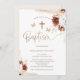 Brown Boho Floral e Butterflies Baptism Convite Este doce convite para batismo apresenta tons brancos, castanhos e naturais arranjos florais boêmicos e duas borboletas falsas de ouro rosa. Ideal para alguém que procura um convite para o batismo floral boêmico moderno.