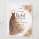 Elegant brown bridal shower design featuring a refined bridesmaid dress illustration with soft floral accents. A warm and earthy style ideal for rustic, boho, or modern bridal shower celebrations with a brown color palette.