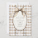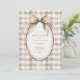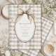 Brown and white gingham background with an oval frame with sweet vintage gingham bow flowing down on your event details Perfect for any season wedding bridal shower.