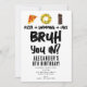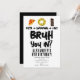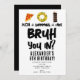 Um convite de aniversário para meninos "Bruh" usando tipografia legal. Uma criança costume "pizza, natação e bolo" adolescentes convidam design de aniversário para qualquer tema de festa de aniversário adolescente. Personalize este convite de aniversário "Bruh" com o seu próprio texto e faça dele o seu próprio!