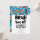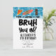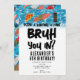 Um convite de aniversário para meninos "Bruh" usando tipografia legal. Uma criança costume "pizza, surfe e bolo", adolescentes, convidam design de aniversário para qualquer tema de festa de aniversário adolescente. Personalize este convite de aniversário "Bruh" com o seu próprio texto e faça dele o seu próprio!